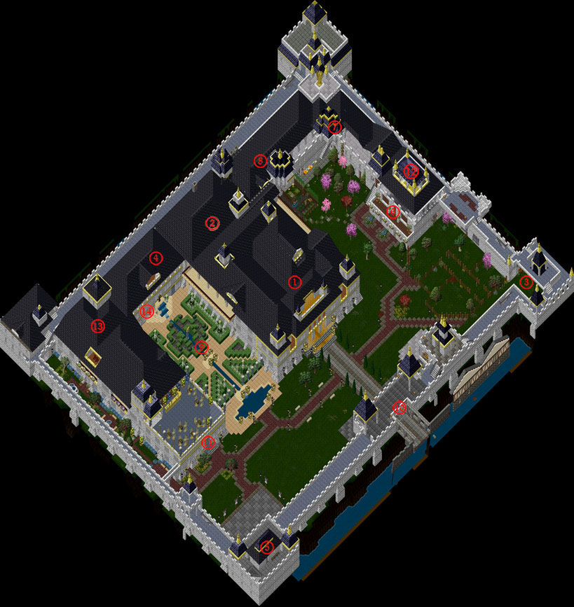 9. Palastgarten: Der ganze Bereiches um den Palast mit seinen Grünanlagen gehört zum königlichen Garten. Auch hier laufen die Wachen Patrouille, dennoch ist es dem Volk gestattet sich in eben jenen Gärten aufzuhalten. Der Intendant der königlichen Gärten hat die Verantwortung über diese Bereiche.